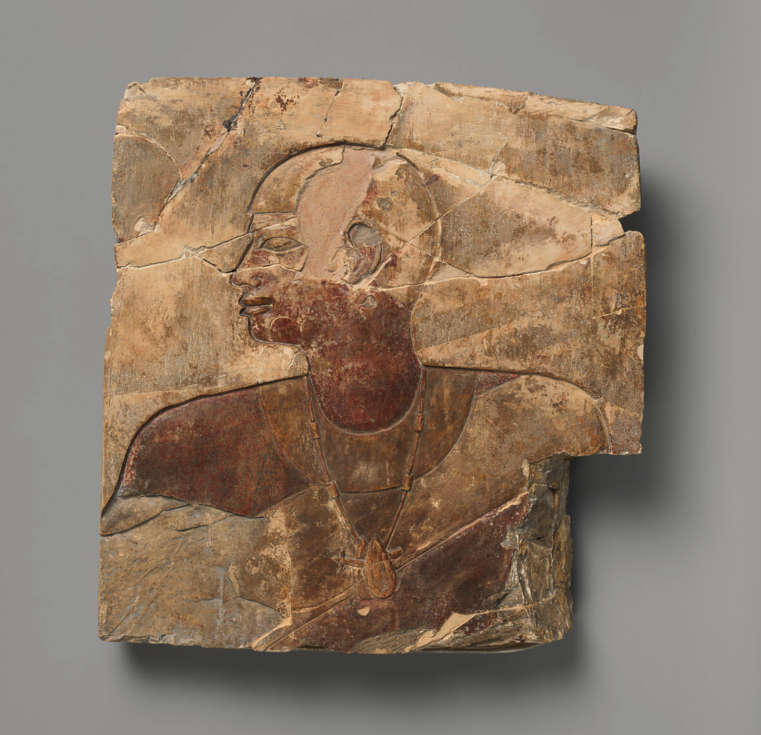Relief attributed to Petamenophis. Late Period, Kushite-early Saite. Dynasty 25–early Dynasty 26, ca. 710–640 B.C. From Egypt, Upper Egypt, Thebes, Asasif, Tomb of Petamenophis (TT 33) probably. Limestone, paint. Dimensions: H. 41 × W. 38.5 × D. 6.5 cm, 14.8 kg. Credit Line: Gift of Mr. and Mrs. Douglas Damrosch, in memory of Mrs. John Tee-Van, 1977. Object Number: 1977.217. Metropolitan Museum of Art, New York, New York.